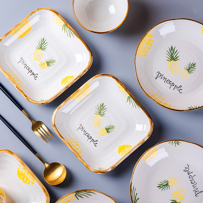6 Plates Day Style Ceramic Dishes Nets Red Creativity Pineapple Home Square Dish Creative Dish Dinner Plate Saucer Combinations