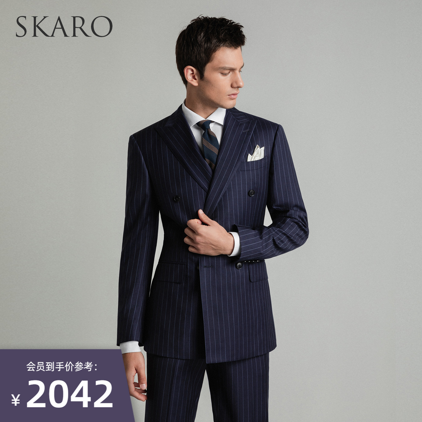 Striped navy blue suit SKG142A Contact customer service to confirm the size is out of stock before placing an order for the purchase of a fit product The size is about to be filled