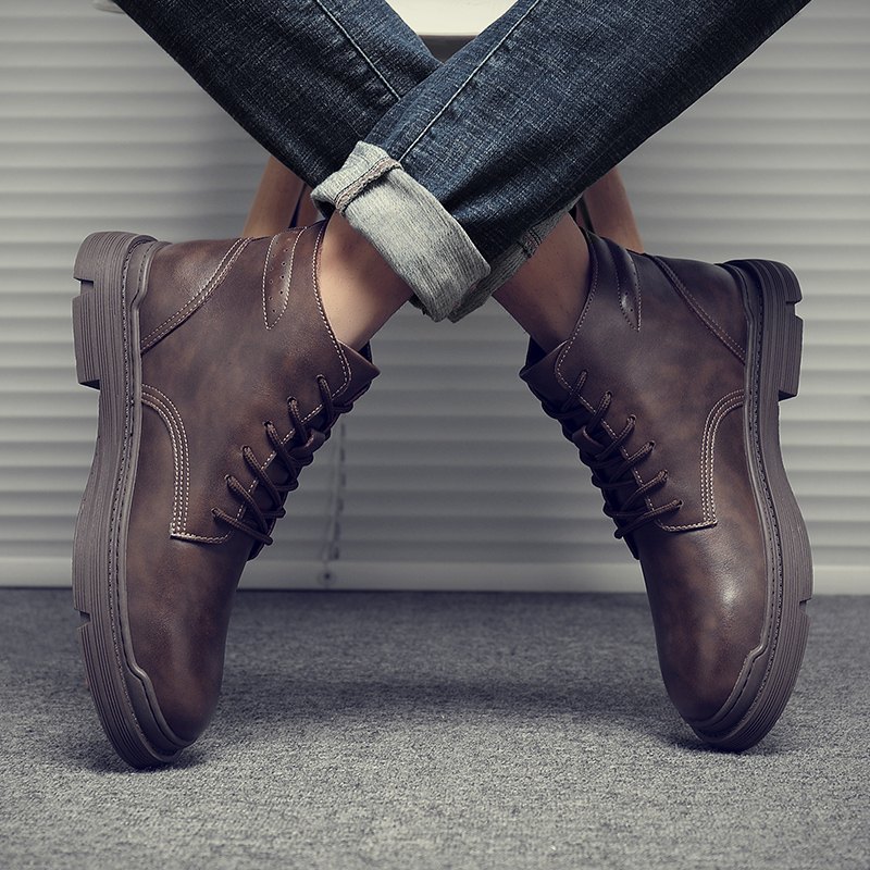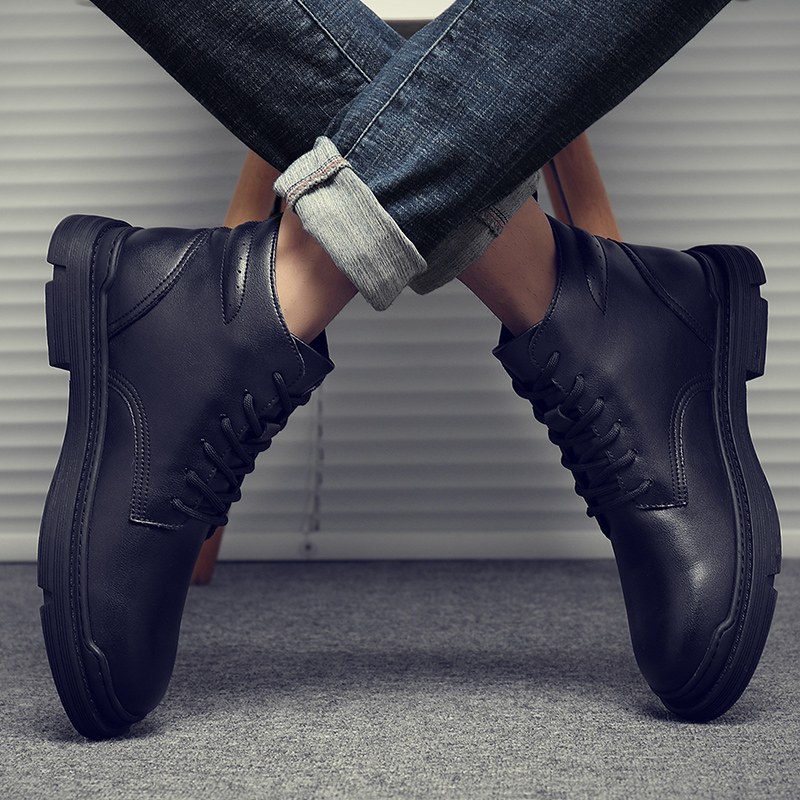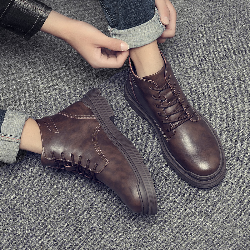 Tide brand Martin boots men's leather winter new British style Korean version trend casual tall men's fleece boots
