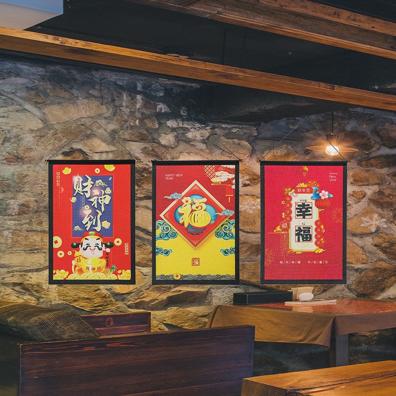 Year of the Tiger decorations New Year's Day store pendant window decoration scene layout Spring Festival pull flag banner Chinese New Year blessing God of wealth