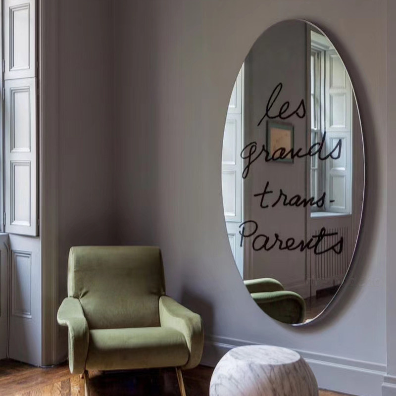 Upper wall oval printed mirror