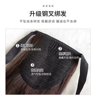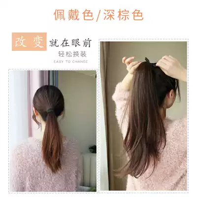 Strap long straight hair ponytail wig female long version fluffy long hair temperament natural valgus micro roll fake ponytail