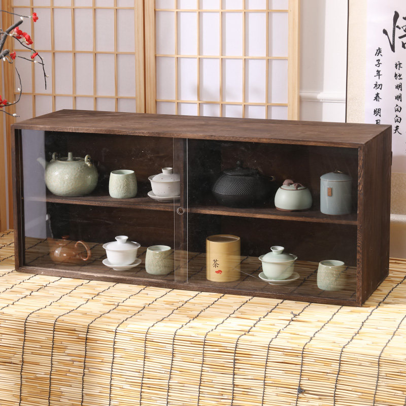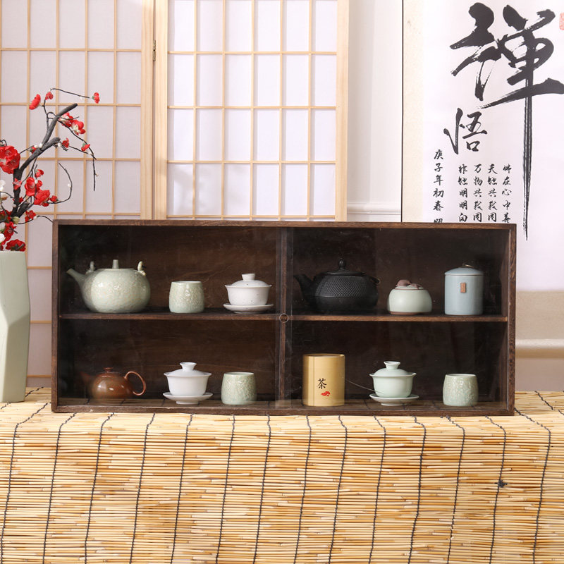 Solid wood wall containing layer shelf multilayer dust-proof shelving tea shelf Teacup Tea Shelf Teapot Shelf Teapot Shelf shelf