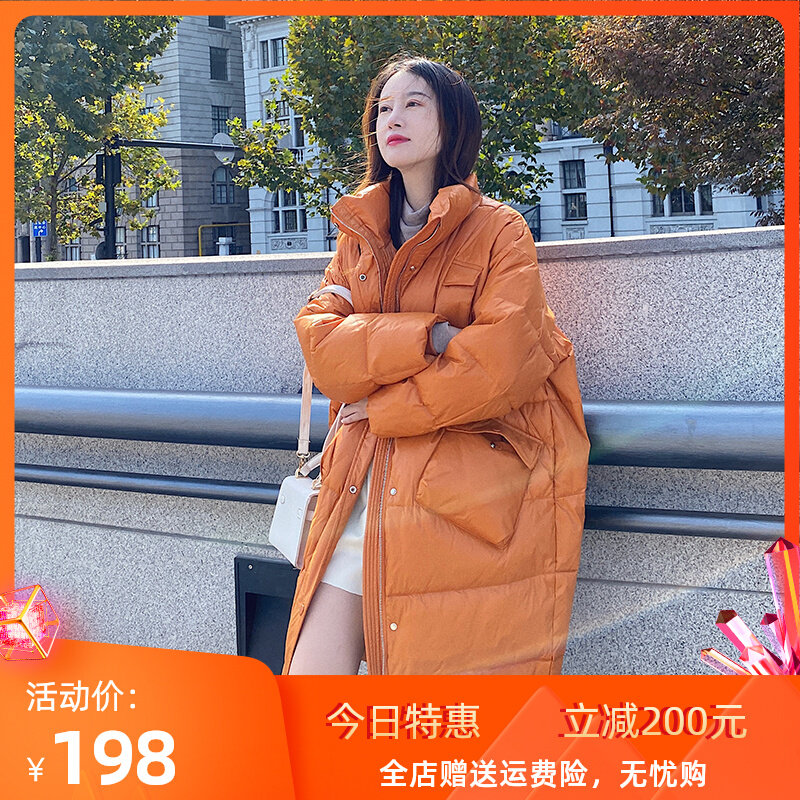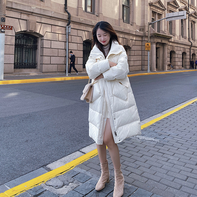 Princess, light and thin bread down jacket woman in the middle of a knee Han version Fashion relaxed foreign air white duck suede free of washing and bright noodles-Taobao