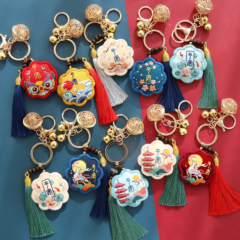 Key buckle-pink cherry blossom key buckle-blue cherry blossom key buckle-blue seven-coloured deer key buckle-red seven colour deer key buckle-open and safe key buckle-open and lucky lion key buckle-pink lotus pond key