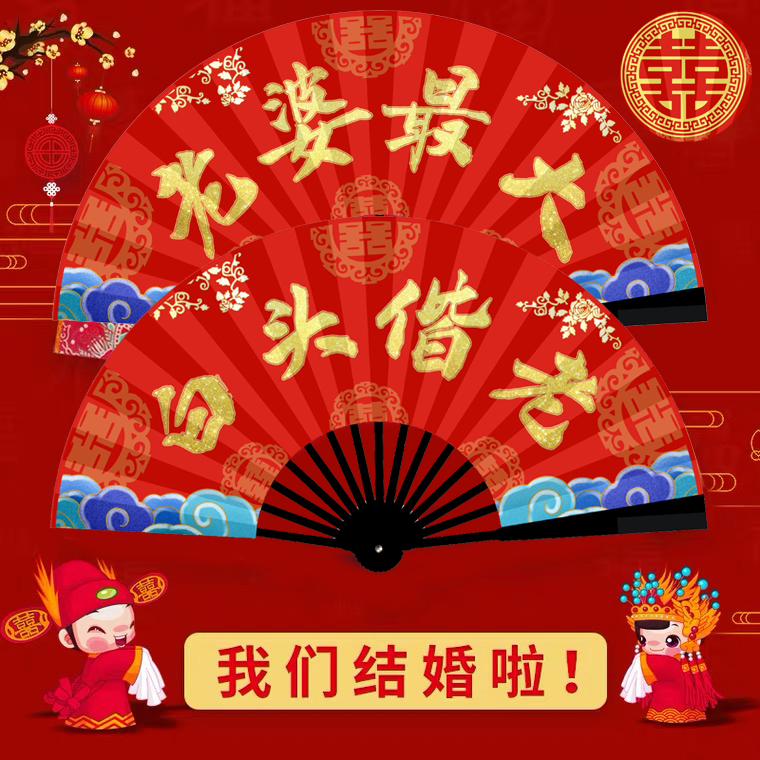 Wedding greeting best man fan Chinese wedding groom photo props Bridesmaid Chinese style Xi brothers take the kiss folding fan