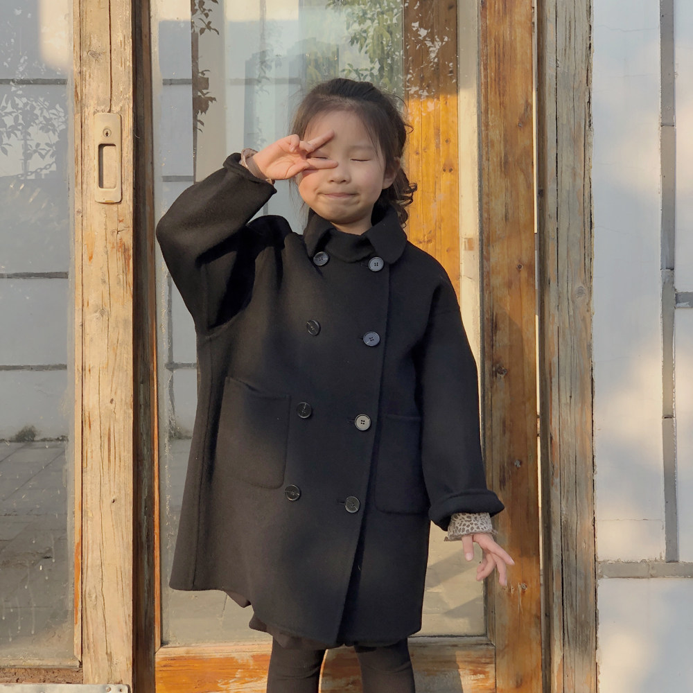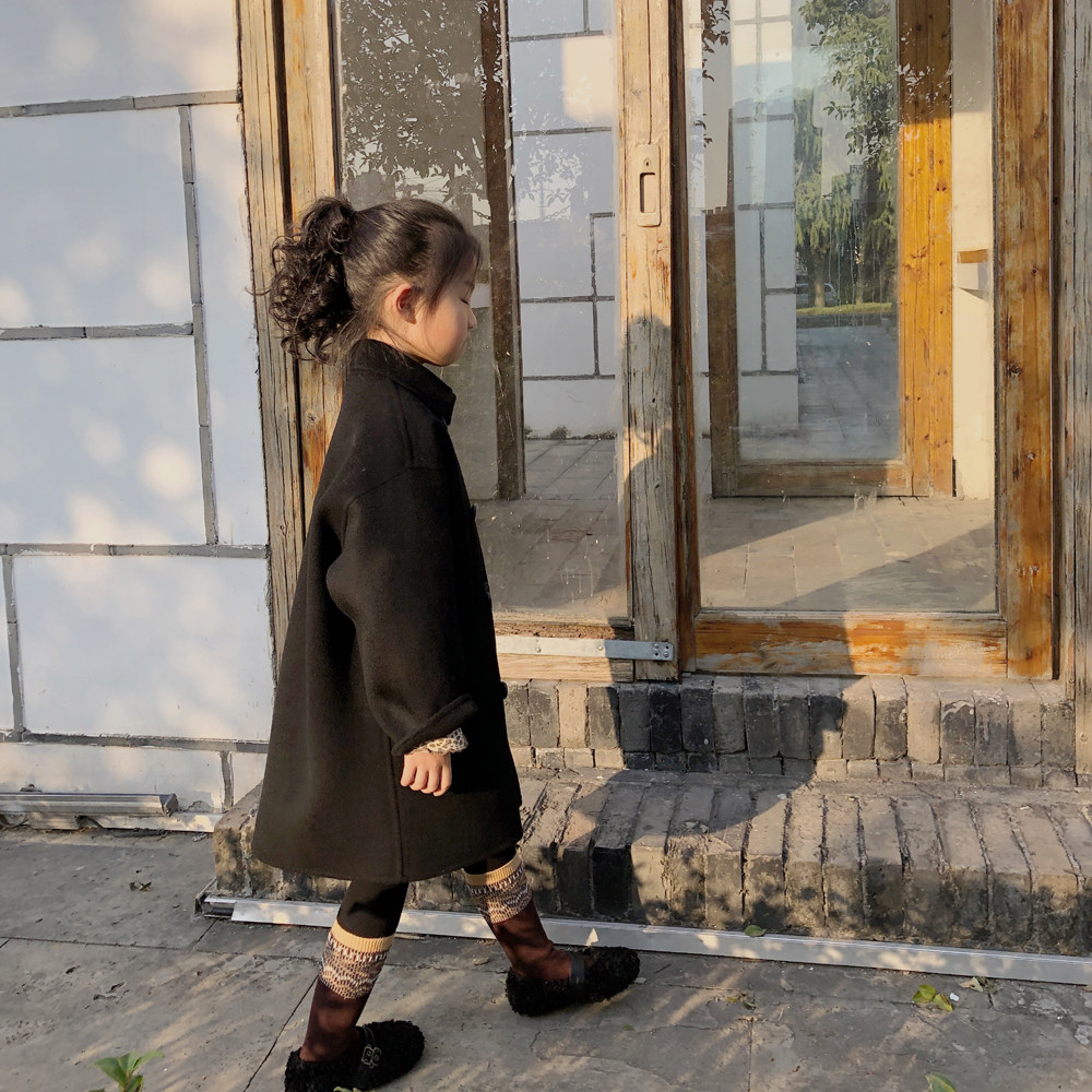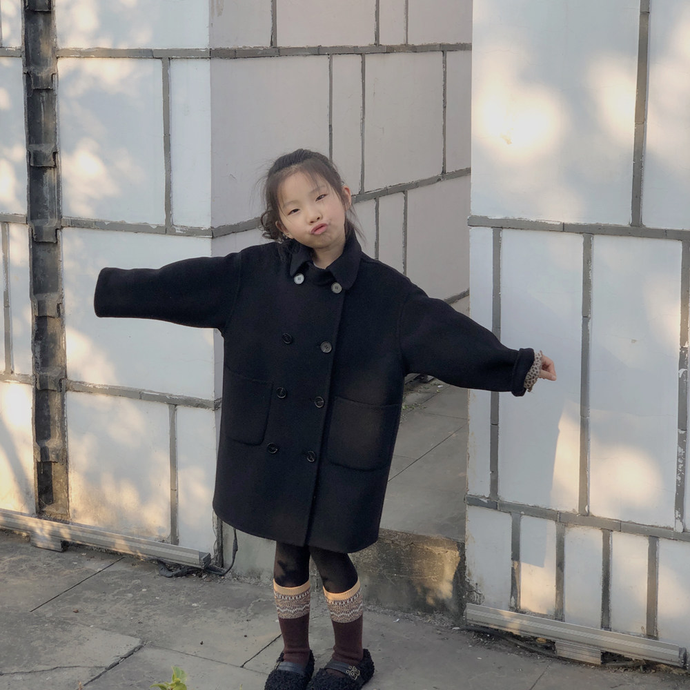 Boys and girls all wool double - sided coat 2022 Fall and Winter Han medium - long - range baby hair coat