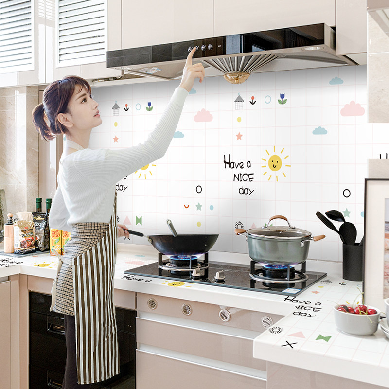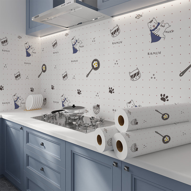 Kitchen oil-proof sticker wallpaper fireproof high temperature resistant cabinet waterproof wallpaper self-adhesive wall sticker hood cabinet stove table