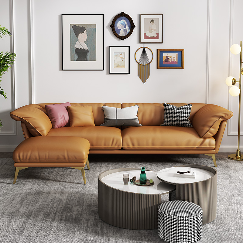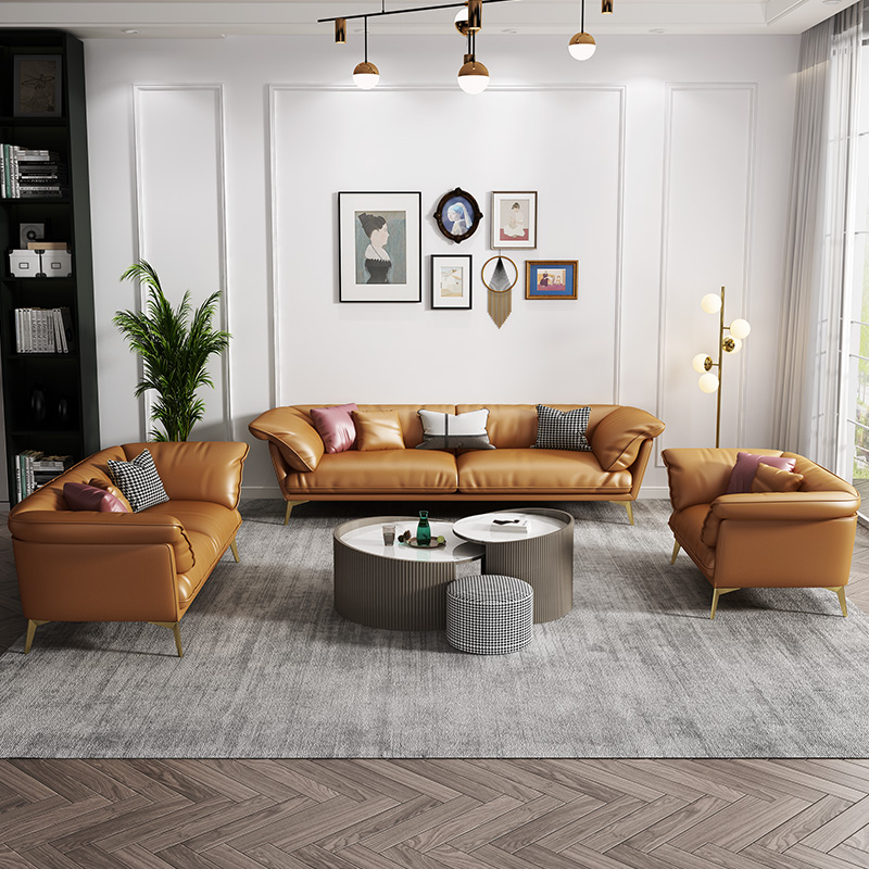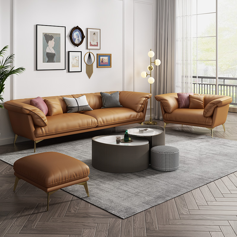 Yishe light luxury leather sofa living room Nordic simple modern straight down sofa Italian minimalist leather