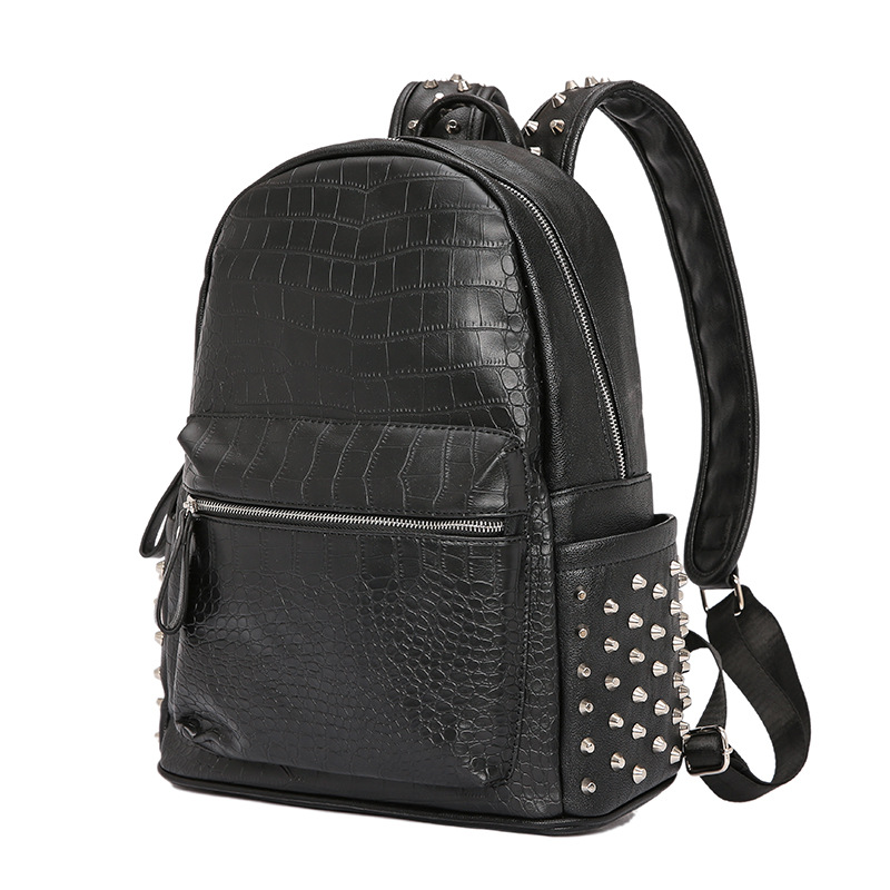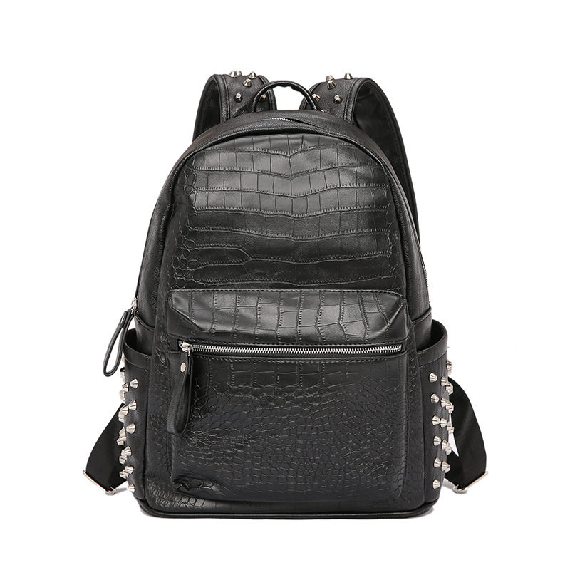 Hong Kong leather crocodile pattern rivet backpack trendy backpack computer bag student school bag men and women couple bag