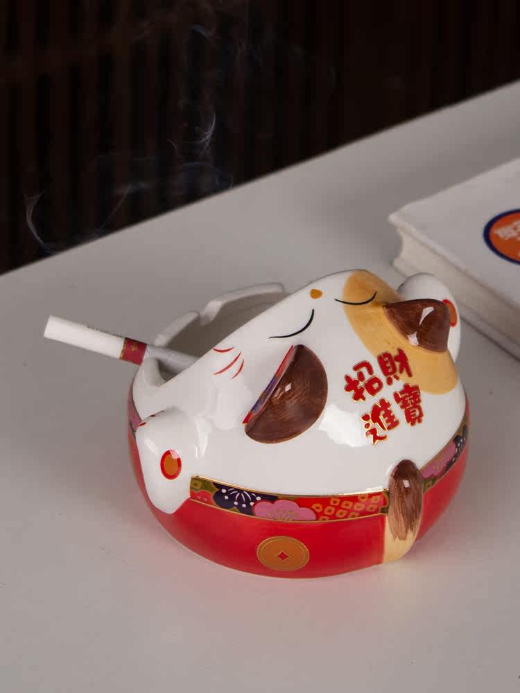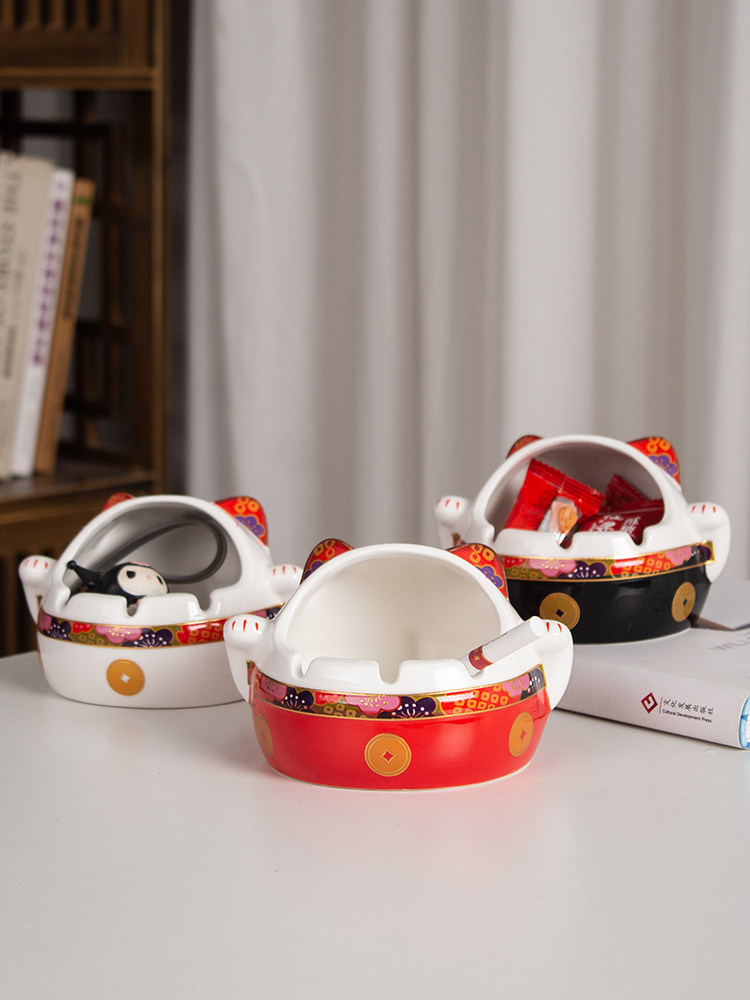 Lucky cat ashtray anti-flying ash ceramic creative personality trend Nordic style key storage decoration home living room - Taobao