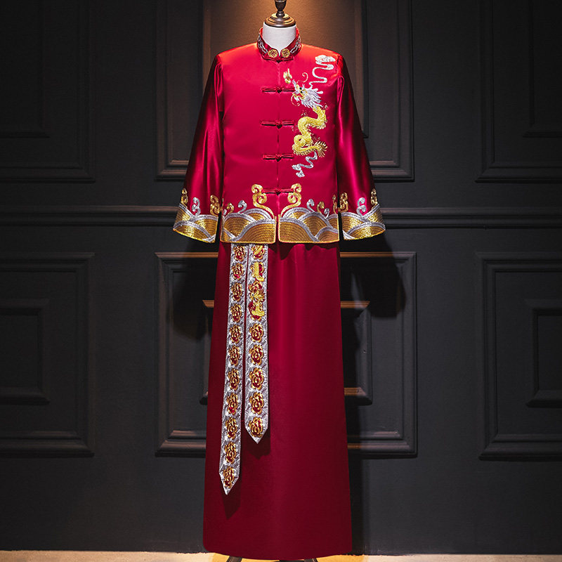 Men's show Won't suit 2022 new Chinese wedding gown Chinese Wind New Lang Dress Red Wedding Dress to take on the men's clothes