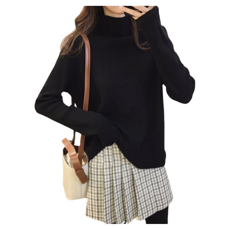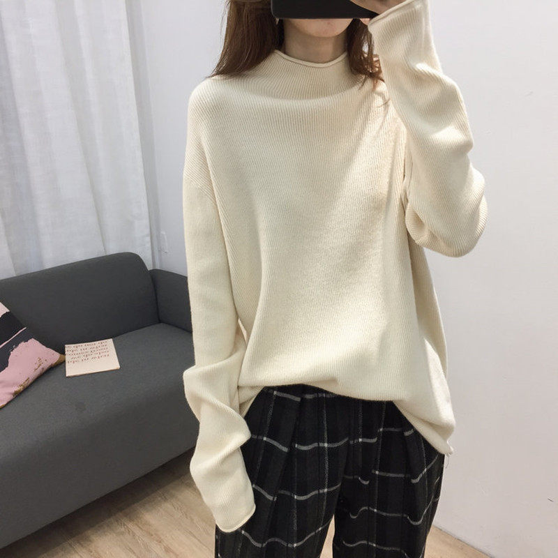 Semi-high collar sweater 2022 spring autumn new loose outside wearing foreign style Lazy Wind Blouse with knitted undershirt