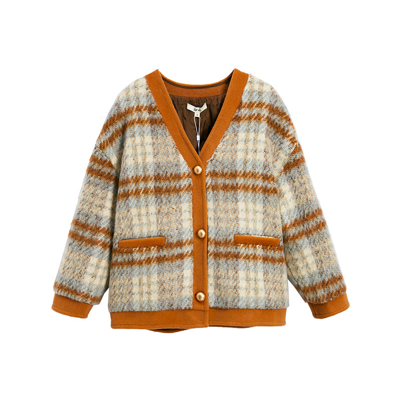 dfvc2022 new v-neck small fragrance style woolen coat female small autumn short woolen woolen coat