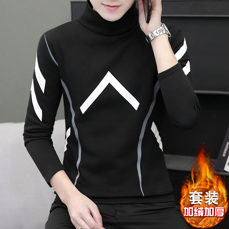 Men's warm underwear suit in winter thickening plus teen high-collar puppy puppy sweater pants for autumn sweater