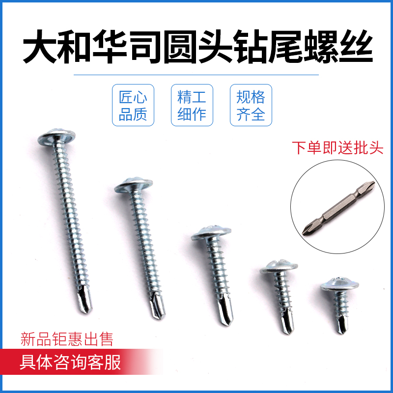Yamato cross groove round head washer drill tail screw large flat head self-tapping self-drilling color steel nail dovetail wire national standard