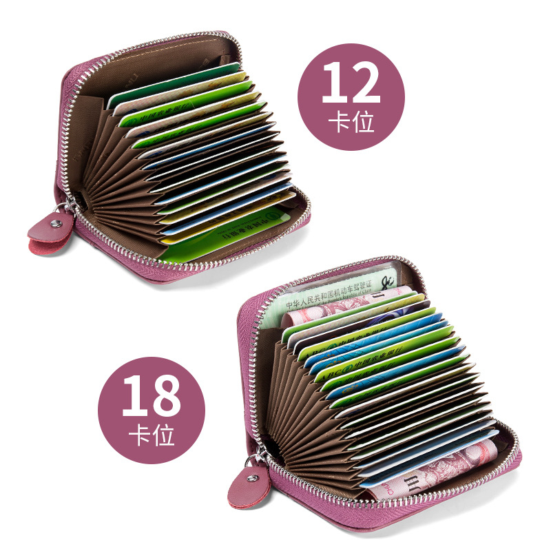 Card holder female leather multi-card anti-degaussing theft brush large-capacity zipper ultra-thin small and trendy brand high-end driver's license - Taobao