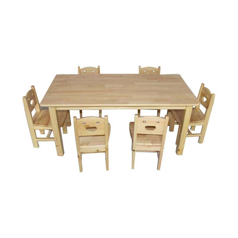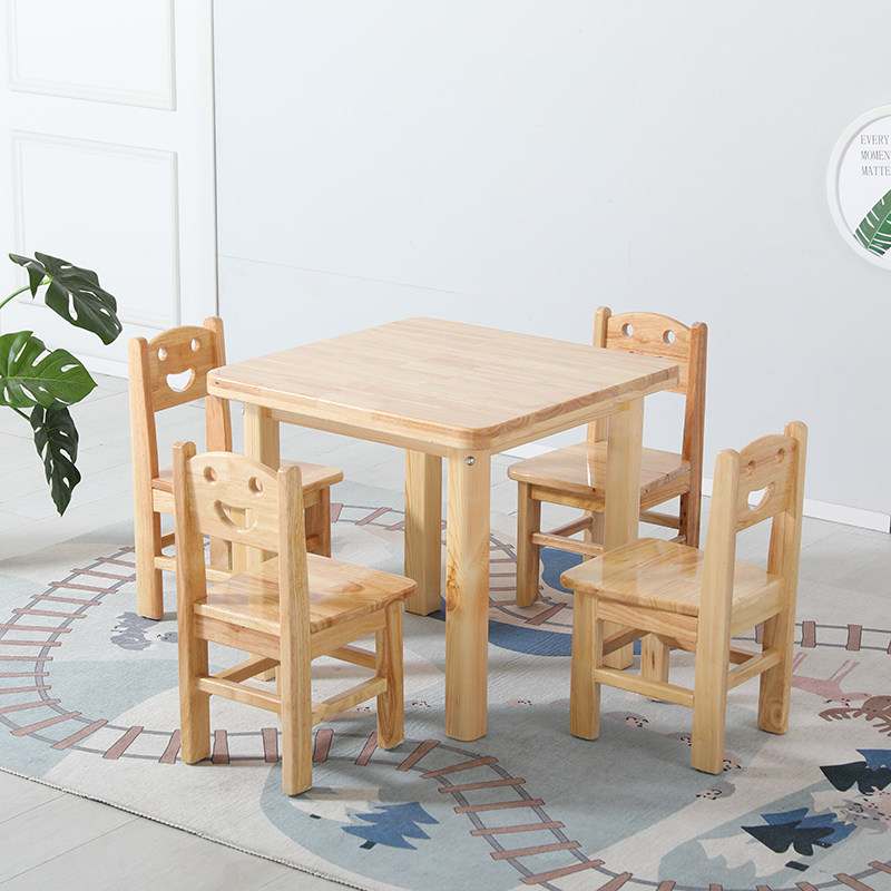 Kindergarten table and chairs Solid wood training course Children's art painting class Early teaching class table and chairs 6-6 Zhangzi pine dining table and chairs