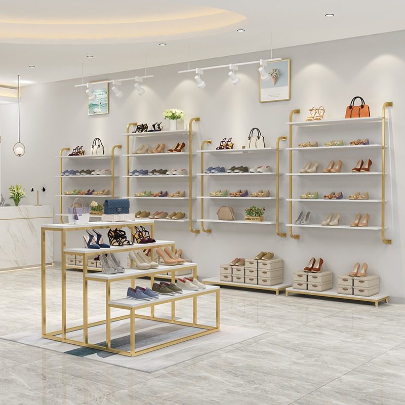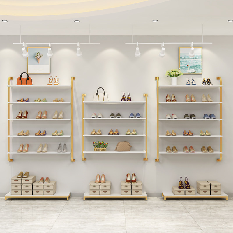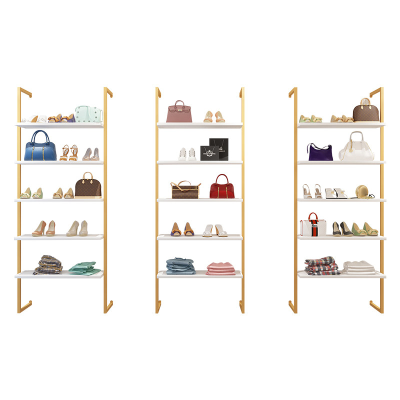 Upper Wall Shoe Rack Show Rack Children Shoes Clothing Bag Shop Golden Commercial Shop Display Shelf Creative Wall-mounted Multilayer Shelving-Taobao