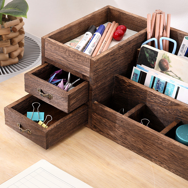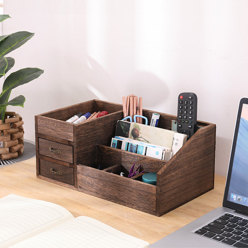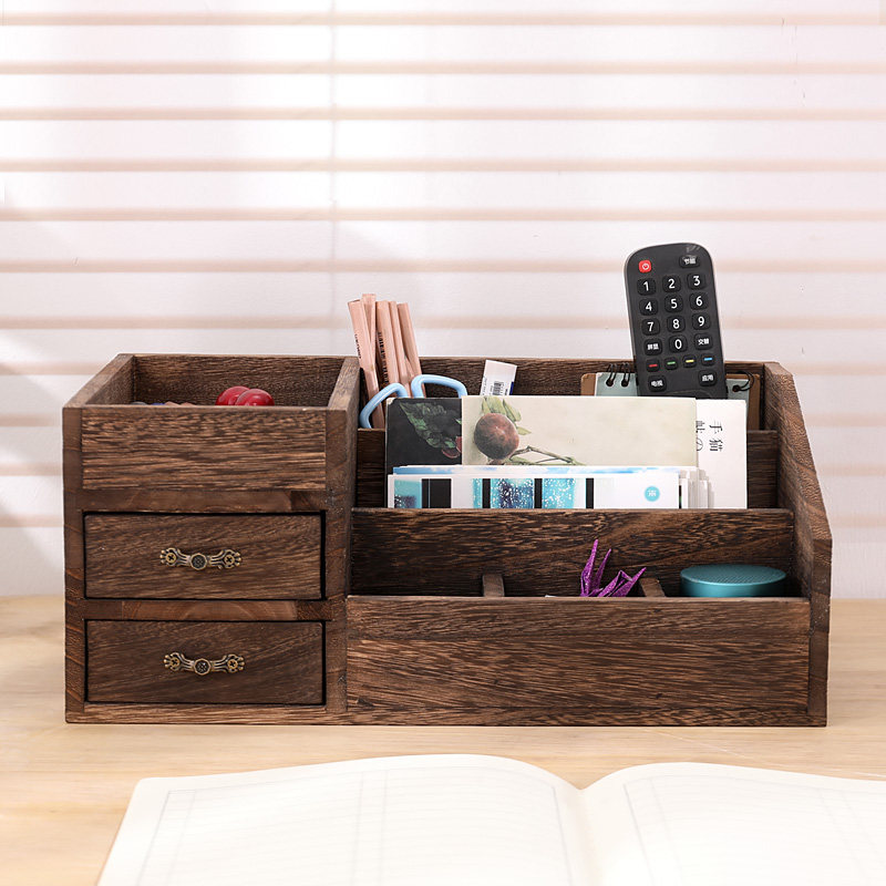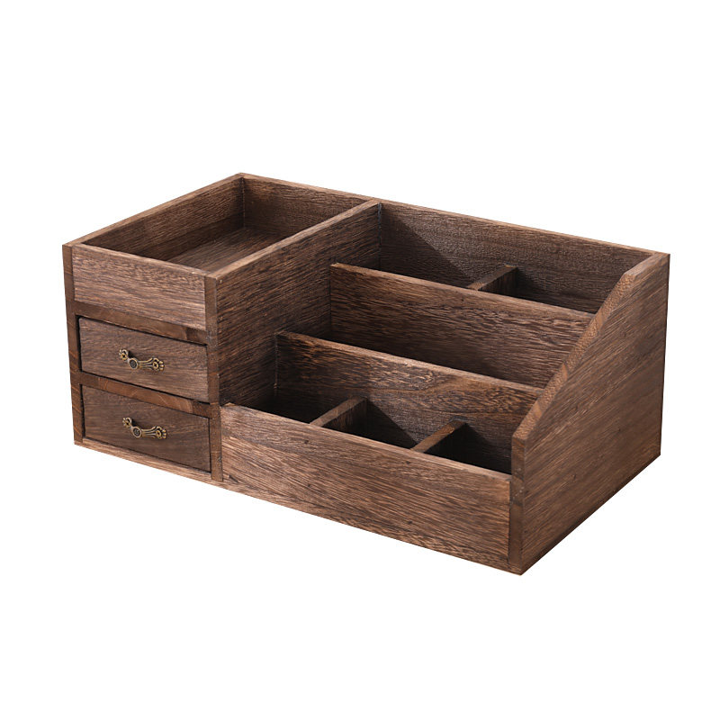 Desktop storage case solid wood drawer-type cosmetic shelve Multi-grid red finishing frame student pen holder pencil case
