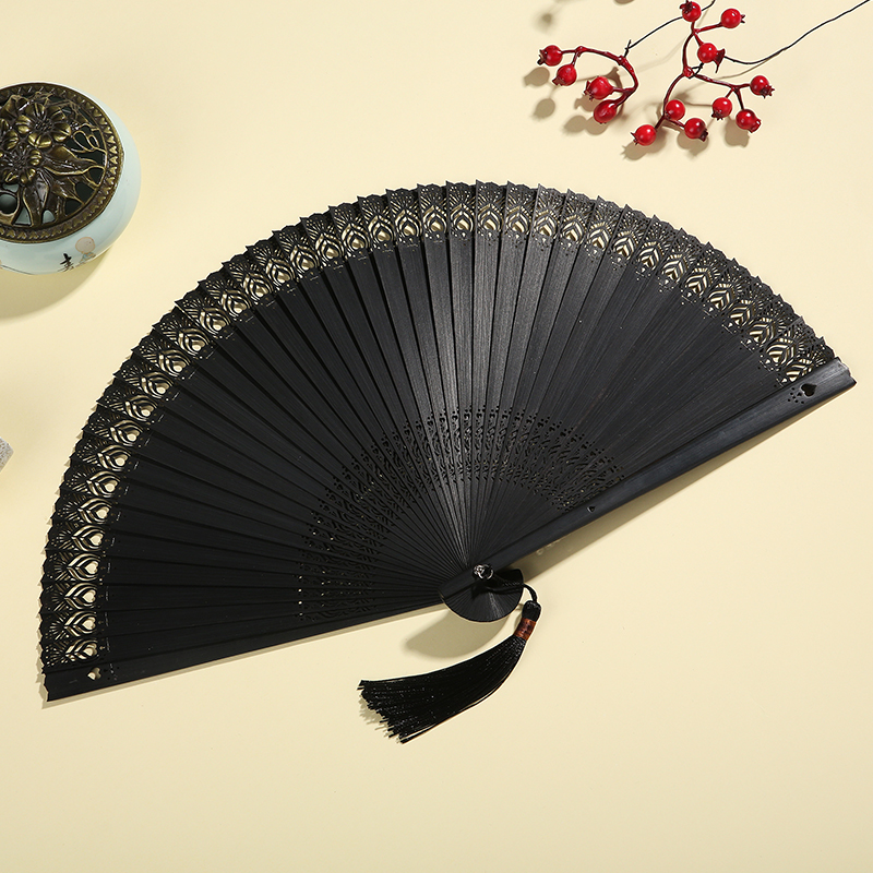 Black Japanese style Chinese fan folding fan hollow ancient style men and women folding fan aluminum alloy