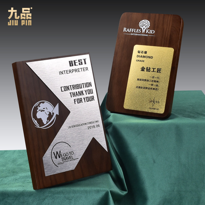 Black Walnuts Wooden authorization card customized to make gold leaf solid wood medal trophy making honorary plaque Muto certificate-Taobao