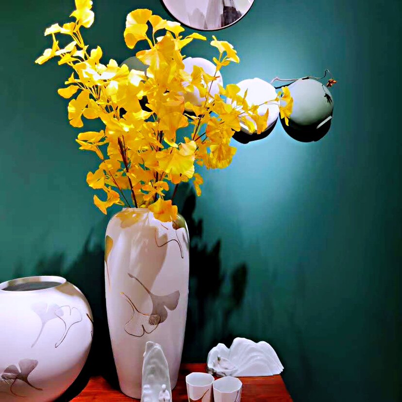 Silk flower wedding indoor landscaping project decoration simulation autumn dry big branch yellow ginkgo leaf plastic fake tree leaves