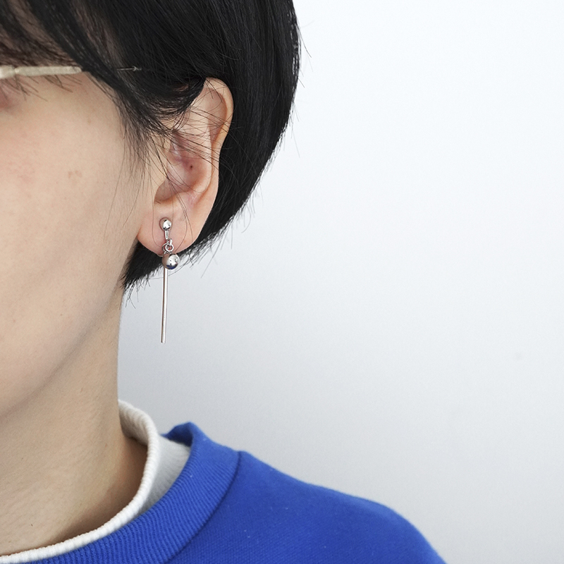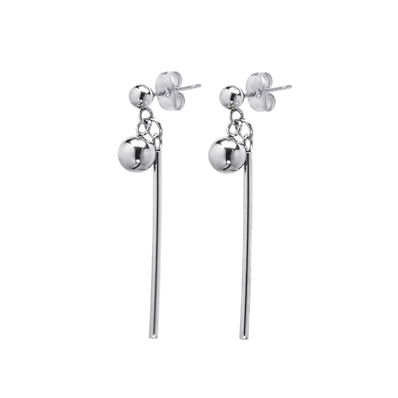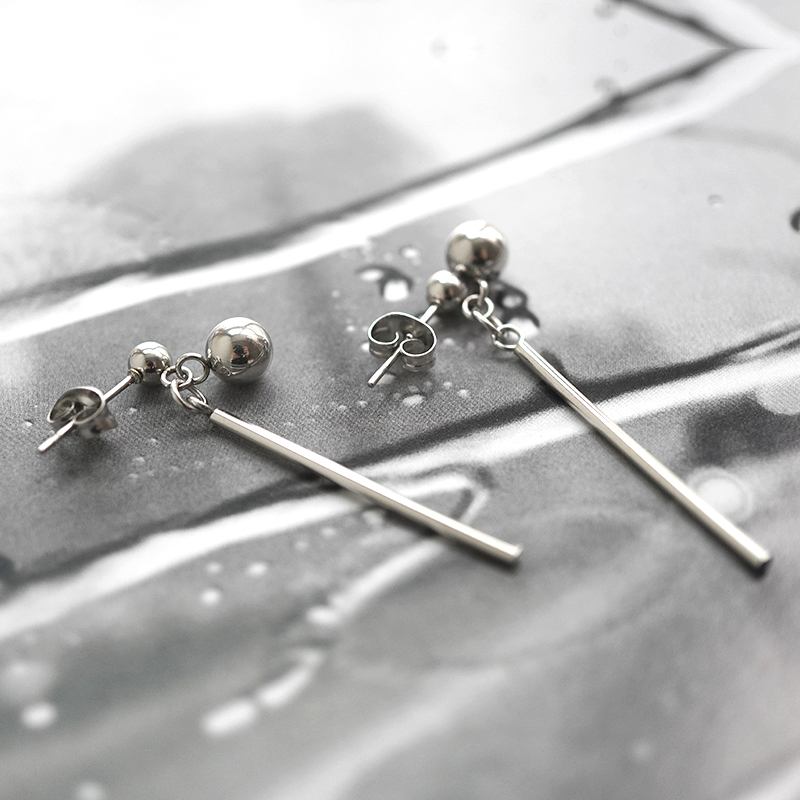 KANSAI titanium steel one-word long version of geometric long strip small bead round face thin earrings ear pin no ear hole ear clip tide