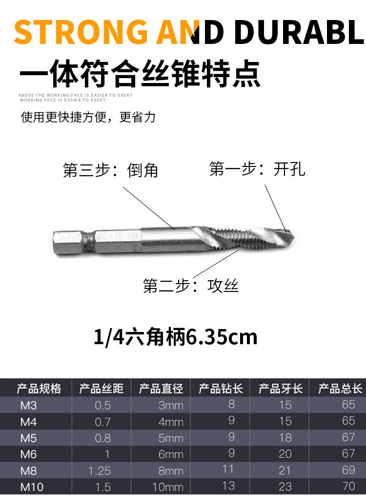 Hexagon shank drill tapping chamfering one-piece composite screw tapping screw tapping drill bit screw tapping for screw machine m3m4m5m6m8m10