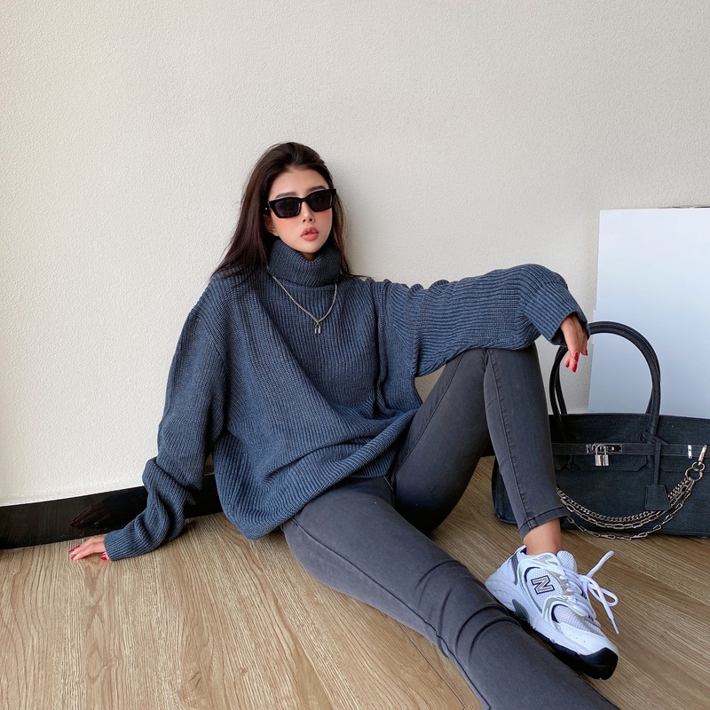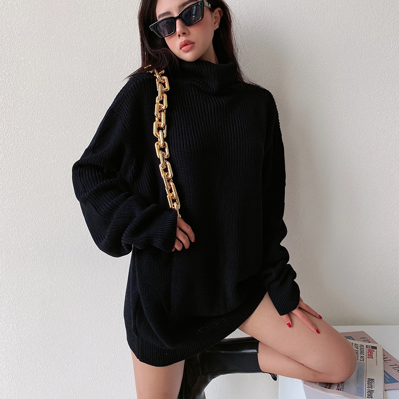 liviahome Europe and the United States ins lazy warm turtleneck loose sweater women fall rotator cuff cover meat wild cover head coat