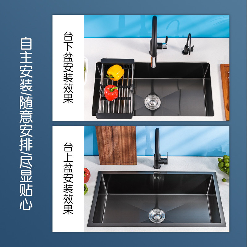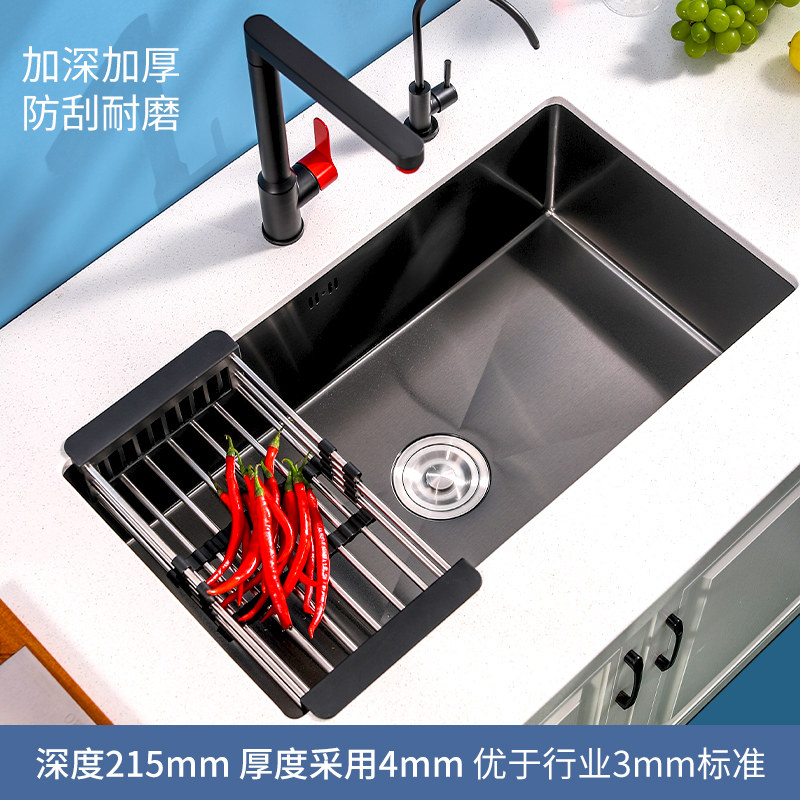 304 stainless steel kitchen nano sink Large single sink Under the table basin Black thickened manual washing basin vegetable washing pool