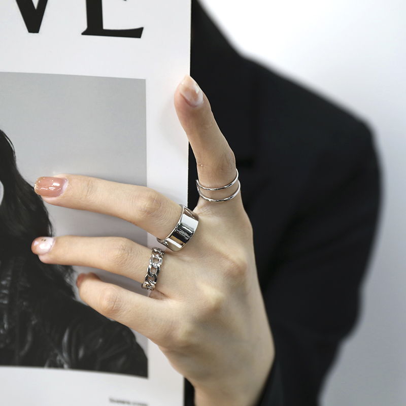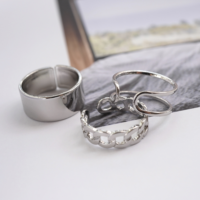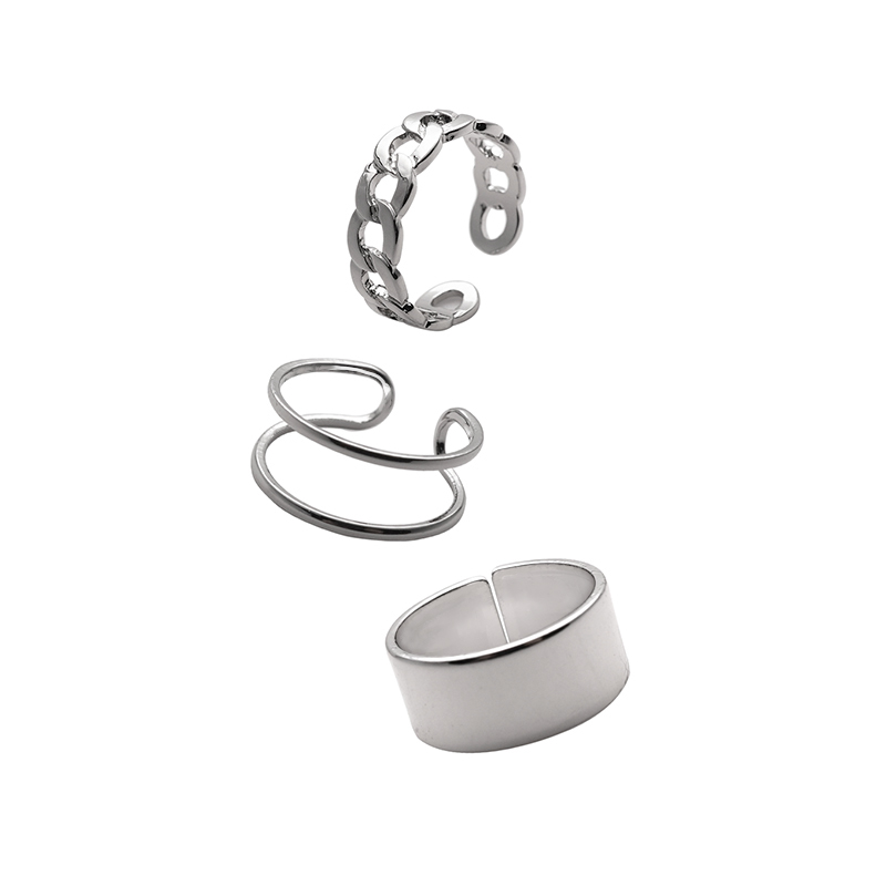 KANSAI Cold Landscape Ring Twist Cutout Three-Piece Set Ring Stylish Temperament Opening Adjustable Tail Ring