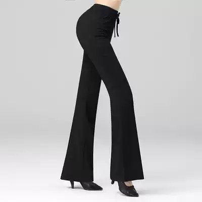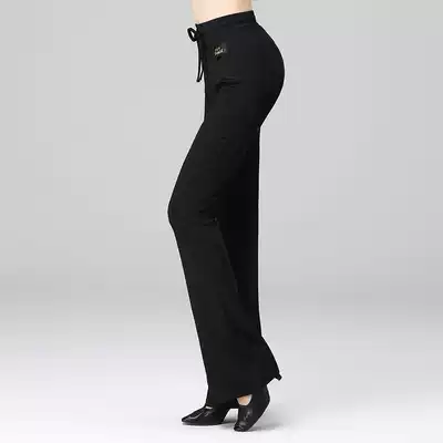 Dan Bo Luo dance pants women's black elastic waist micro-body pants slim square dance thin Latin dance pants