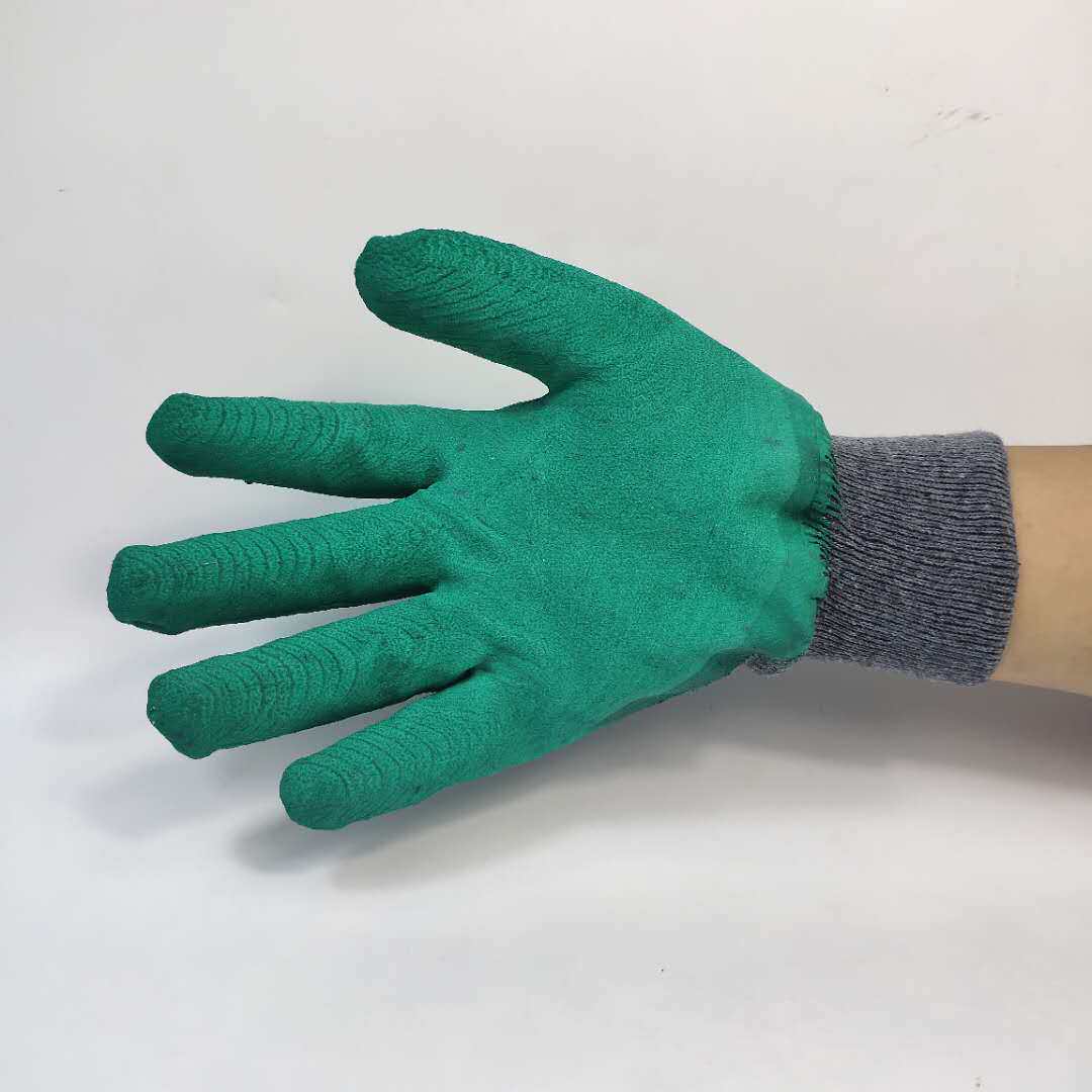 Thickened anti-wear and abrasion resistant green wrinkled glue-soaked rubber strain gloves breathable cloth hanging glue 10 to pay