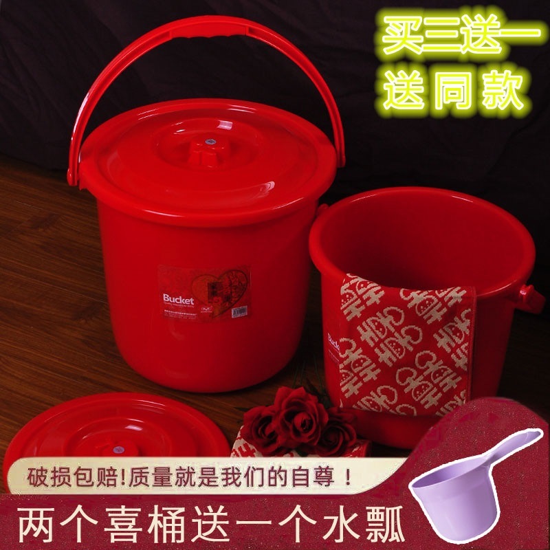 Red bucket housewarming rice bucket descendant bucket Red large capacity bride hand-moved into the festive bucket wedding newlywed