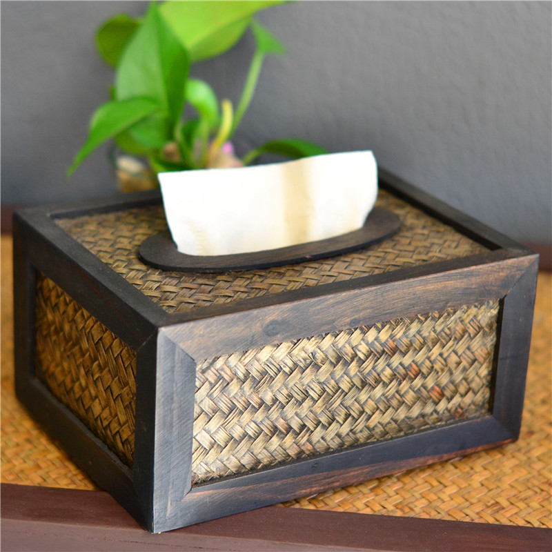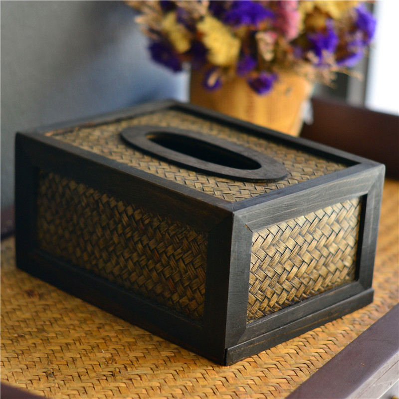 Thai home decoration desktop dining room handmade tissue box Bamboo toilet paper box Living room retro dining room Southeast Asian style