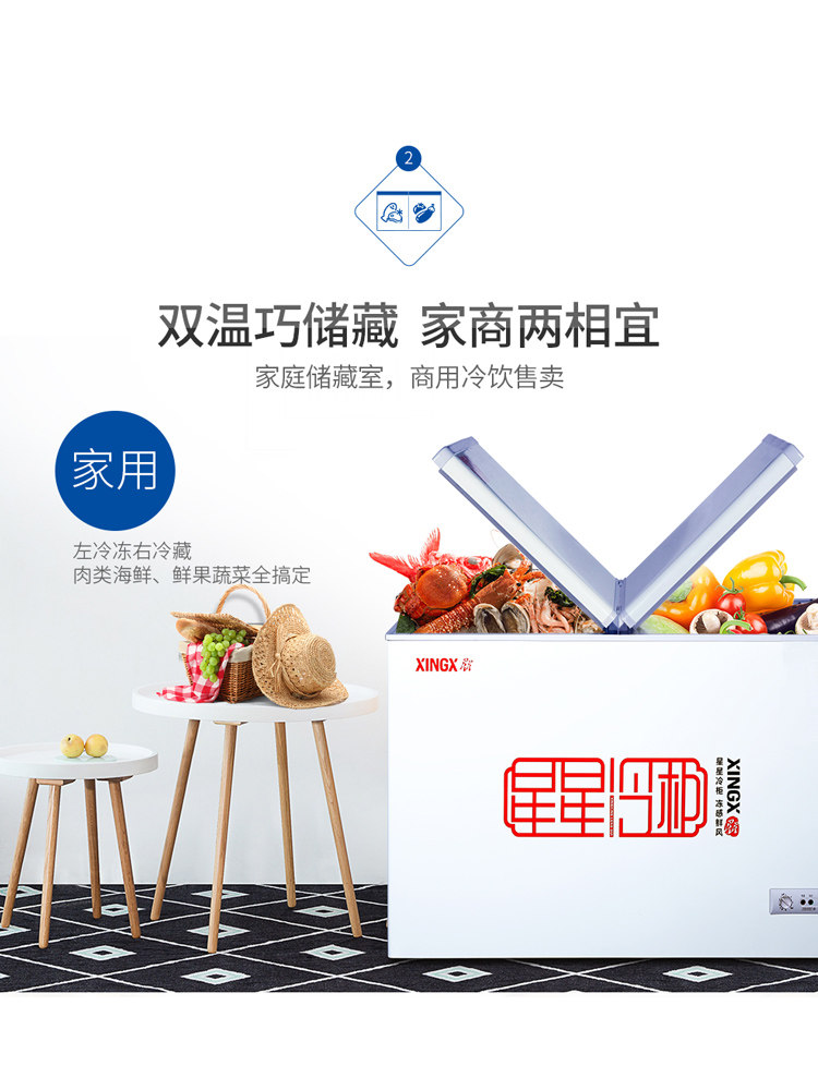 Star 230 liters double-temperature freezer household freezer refrigerator horizontal double-door refrigerated fresh-keeping commercial double-box showcase