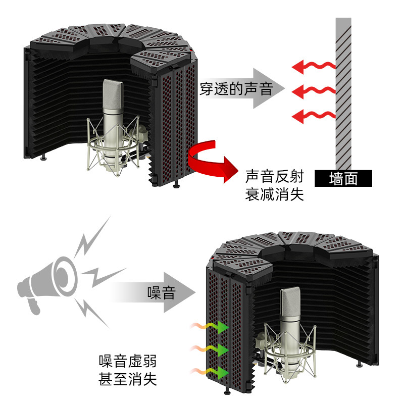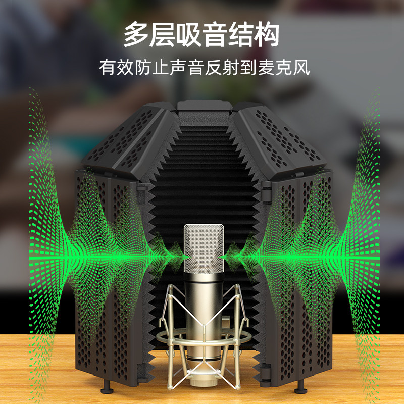 Royal Aoi desktop simple recording studio five-door soundproof cover microphone live sound absorption room reverberation noise reduction anti-wind screen