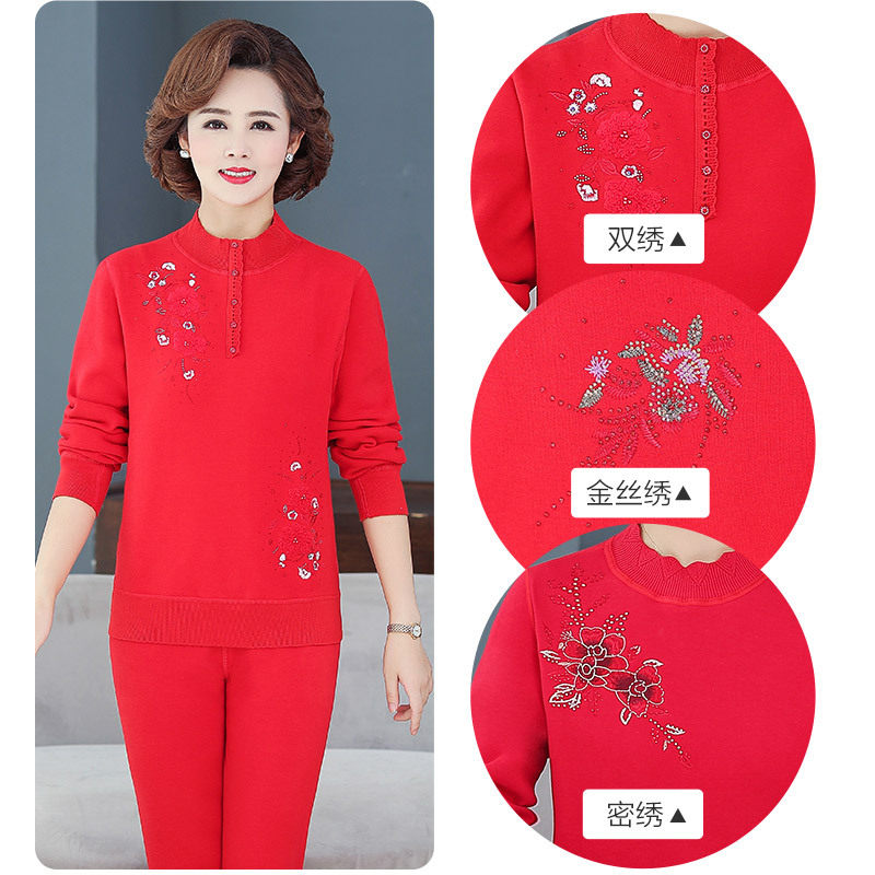 Middle-aged and elderly people in the year of fever clothes women thick plus plus plush big red mother cotton sweater cotton large size set autumn coat