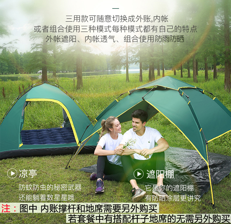Tent outdoor 3-4 people 2 people automatic camping thickened rainproof double field camping equipment portable speed opening