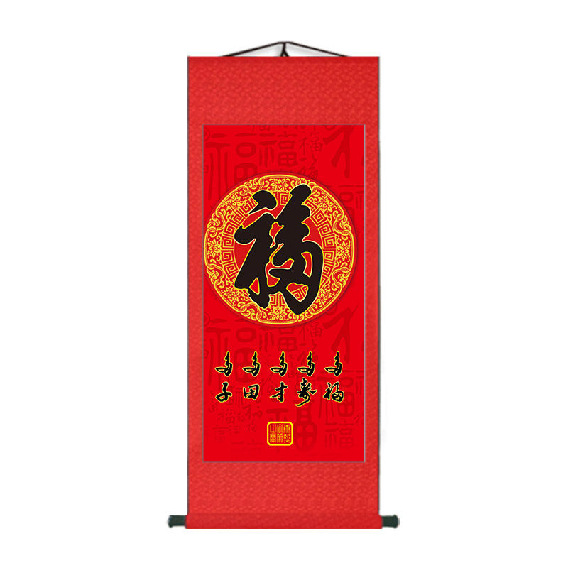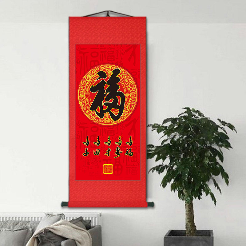 Fufu hanging painting calligraphy Baifu scroll living room decoration painting Wufu painting study Zhaocai calligraphy and painting vertical version of Chinese painting