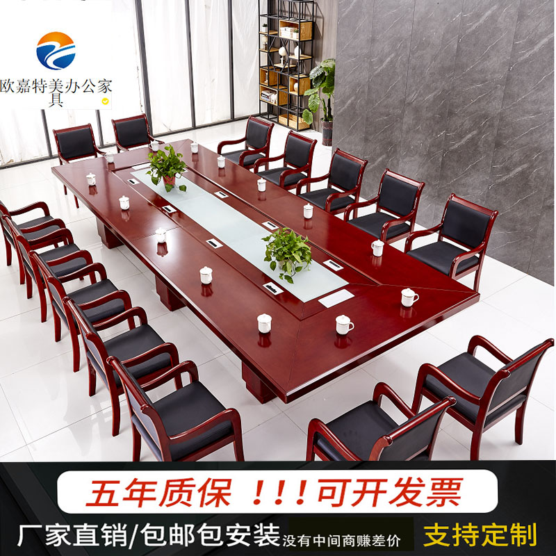 Large multi-person conference table leather conference long table simple modern long table talking table table and chair combination office furniture