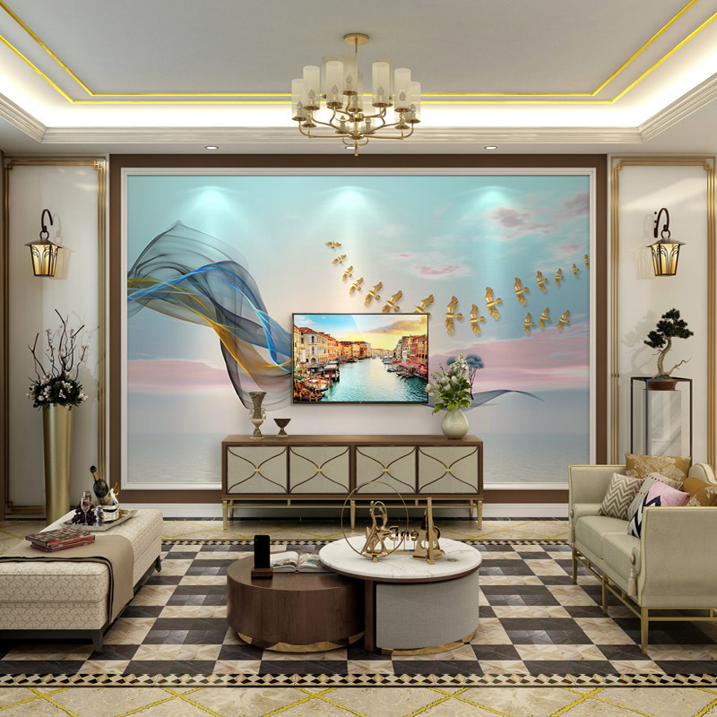 Living room TV background wall Bamboo Wood Fiber Integrated Wall Panel Film & TV Wall Decoration Quick Fit Wall Buttoned Board Non Marble