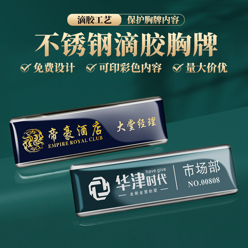 Stainless steel badge custom pin type work number plate custom employee name plate work card drip glue badge hanging