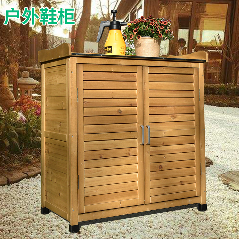 Outdoor wooden shoe cabinet containing cabinets to adjust rain and corrosion anti-corrosion courtyard balcony door