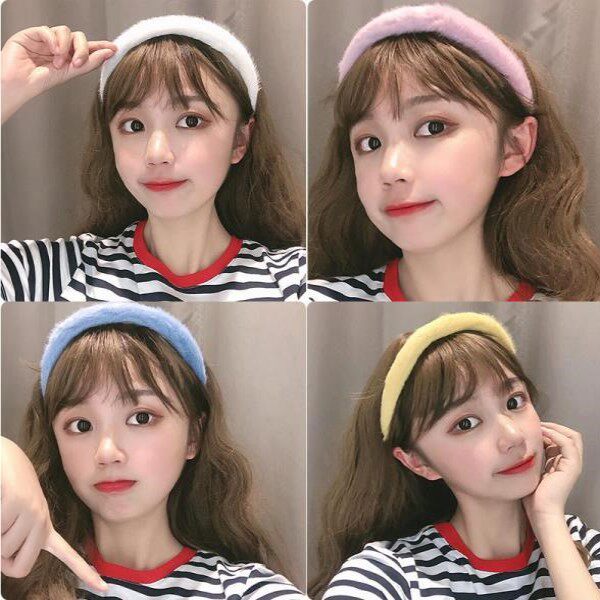 Tau pink plush headband-9UW light purple purple plush headband-868 lemon yellow yellow plush headband-L71 milky white plush headband-178 light green green