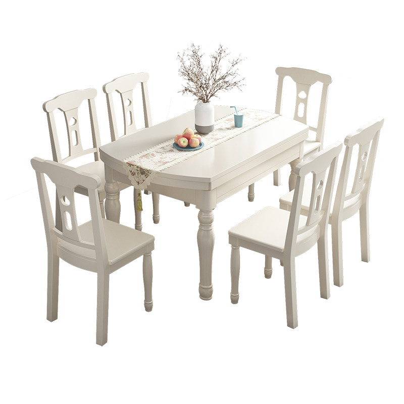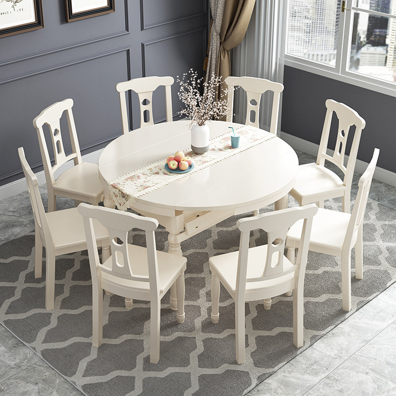 American solid wood telescopic folding and folding round table small family type simple and round two-purpose dining table and chairs set with dining table