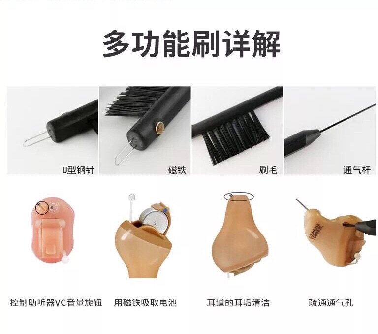 Hearing aids accessories Cleaning 9 sets of hairbrushes U shaped hooks with magnets small hairbrushes ventilation rods cleaning rods 9 holes hairbrushes