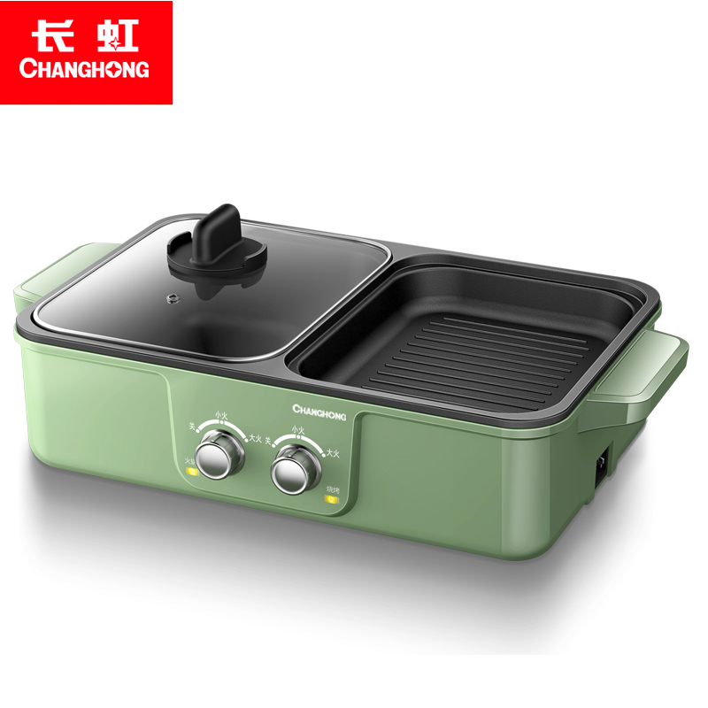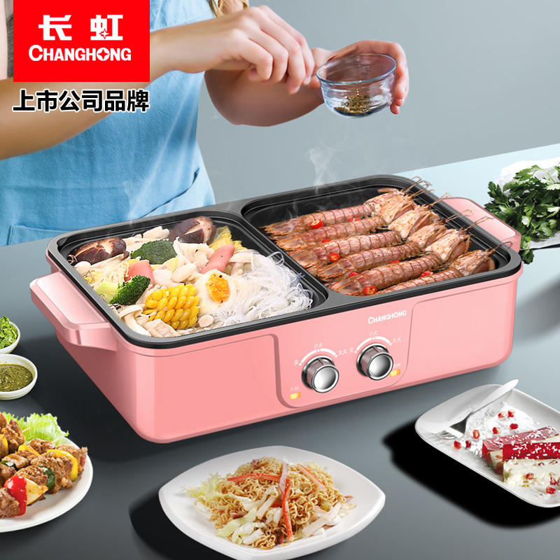 Long-iridescent multifunctional electric frying pan electric hot pot barbecue oven Home Students Dormitory Small Cooking Noodle Grilled Meat Pan