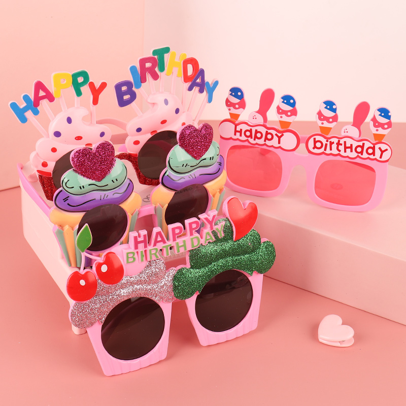 Birthday decoration scene set party glasses happy props headdress children's hat baby crown cake photo